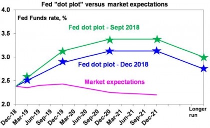 In raising the target range for the Fed Funds rate by another 0.25%, the Fed remains upbeat on the outlook for the US economy and noted the continuing strength in the US labour market and solid growth. However, it has added the word “some” in reference to “further gradual” increases in interest rates going forward. It has also indicated it’s monitoring global economic and financial developments. And it has lowered the “dot plot” median of Fed meeting participants interest rate expectations from three hikes next year to two – albeit it’s still above market expectations – and edged down the long run estimate for the Fed Funds rate to 2.75%. While it’s not enough to satisfy share markets just yet, the Fed is moving dovish.