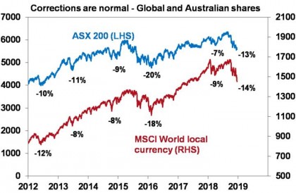 Grizzly bears maul investors but gummy bears leave a nicer taste. Corrections are quite normal and healthy as they enable the sharemarket to let off steam. Excluding the present episode since 2012 there have been four corrections and one gummy bear market (2015-16) in global and Australian shares. Bear markets generally are a lot less common, but what we saw in 2015-16 was a gummy bear market.
